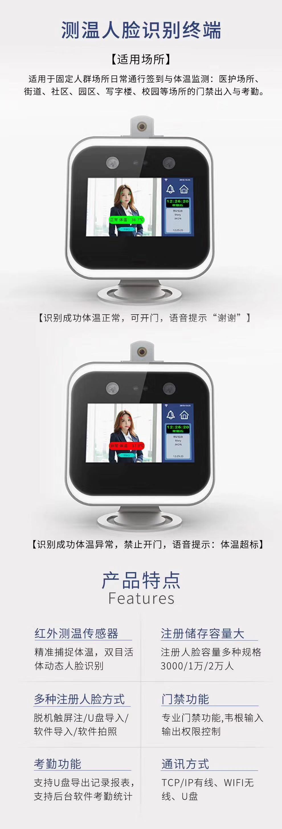 測體溫人臉識別門禁考勤機